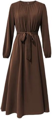 Women’s Round Neck Long Sleeve Dress with Waist Belt for Women