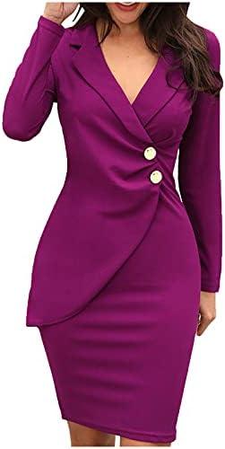 This stylish knee-length dress features long sleeves and a flattering V-neckline, making it an excellent option for both office wear and cocktail parties. The bodycon silhouette enhances your natural shape while providing a professional look suitable for business settings. Crafted from comfortable and breathable fabric, it allows for easy movement, ensuring you feel confident and poised whether at your desk or on the dance floor. Additionally, the dress is available in a variety of colors, giving you the versatility to match it with different accessories for various occasions.