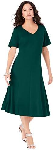 Roaman’s Women’s Plus Size Ultimate Ponte Seamed Flare Dress