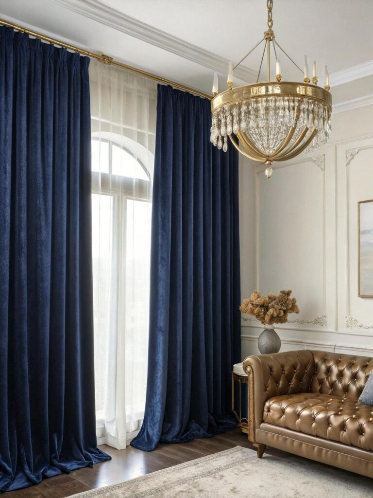 Floor-to-ceiling curtains inject a sense of drama while visually enhancing ceiling height. Opt for lavish, heavy textiles such as silk or velvet, choosing colors that harmonize with your décor—be it understated neutrals or striking hues.