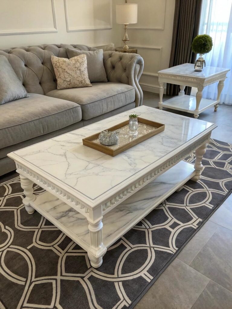 Introducing marble elements infuses a living room with classic sophistication. Utilize marble surfaces in coffee tables, accent tables, or as ornamental wall cladding. The stone’s distinctive veining imparts an artistic flair, making every piece unique.