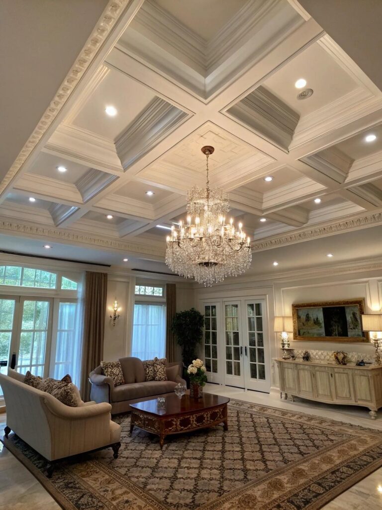 Subtle recessed lighting within the panels enhances the ambiance dramatically. Suitable for both classic and contemporary styles, coffered ceilings remain a hallmark of timeless luxury.