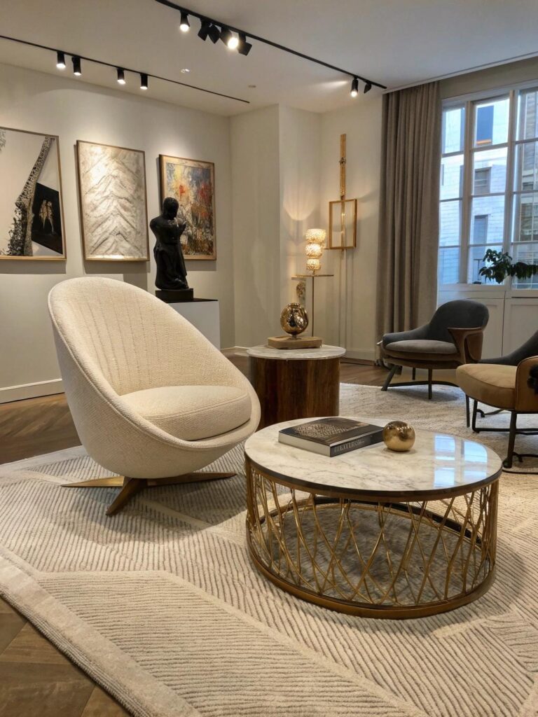 Keep surrounding decor minimalistic to highlight the furniture’s sculptural allure. This blend cultivates a refined, thoughtfully curated environment.