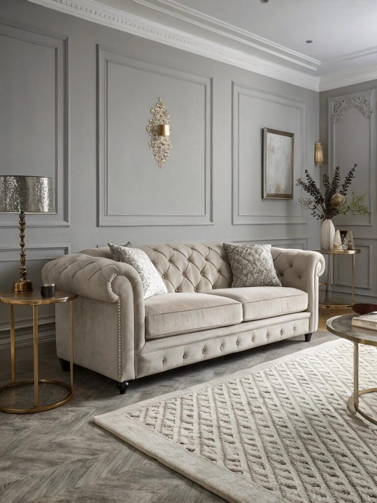 Gilded finishes like gold, silver, and brass introduce sparkling glamour to living spaces. Incorporate these metallic tones through lighting fixtures, furniture legs, or small décor pieces. These accents reflect illumination, adding depth and richness.