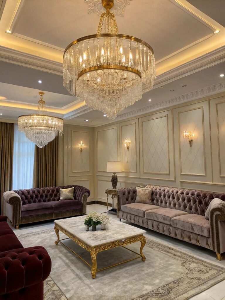 3. What lighting styles contribute to a luxurious living room ambiance?