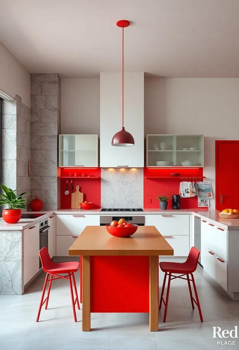 - Accent Walls: A vibrant red accent wall can serve as a focal point, beautifully contrasting with white cabinetry or wooden elements.