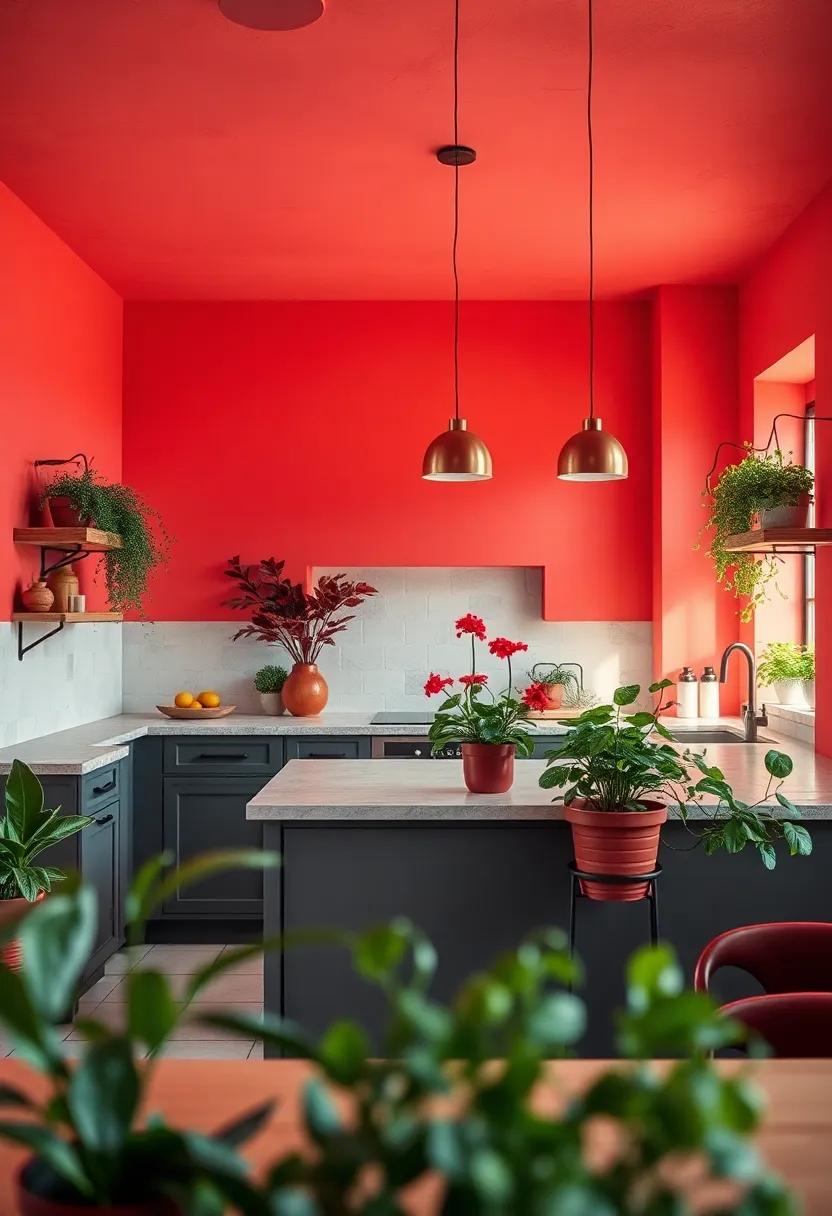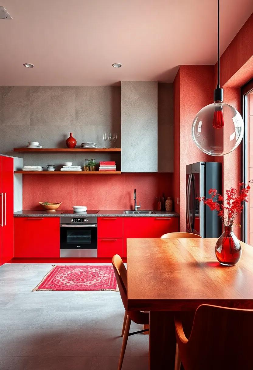 - Open Shelving: Display vibrant dishware or plants against the red backdrop to create a lively composition.