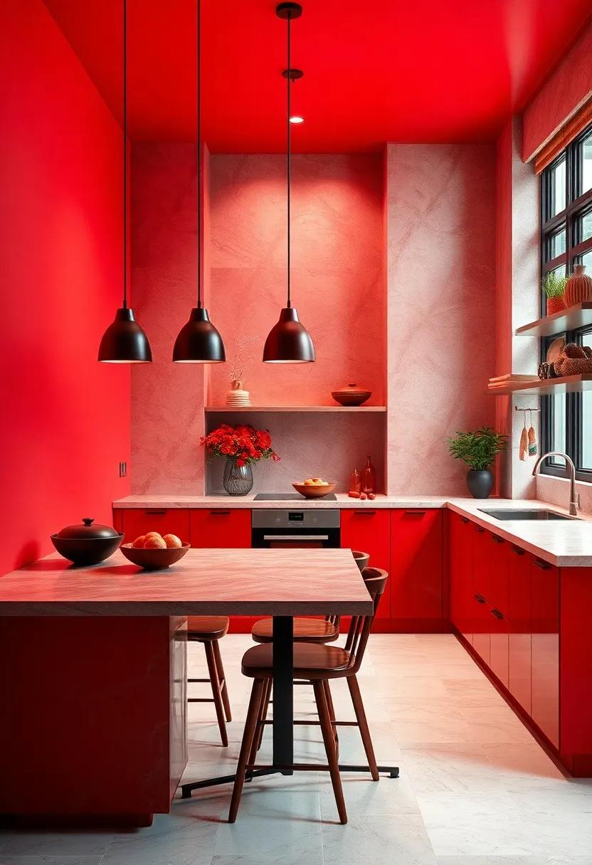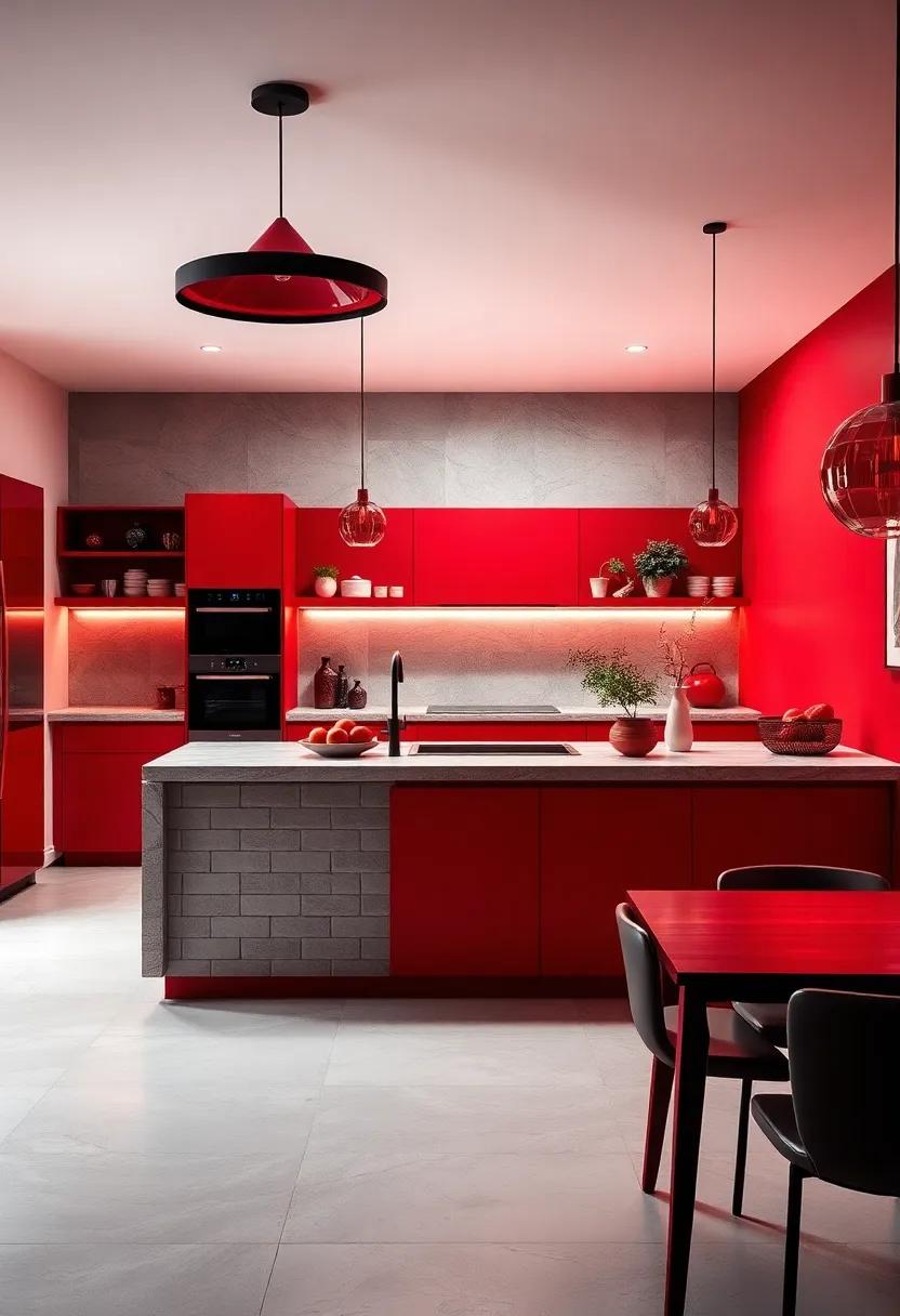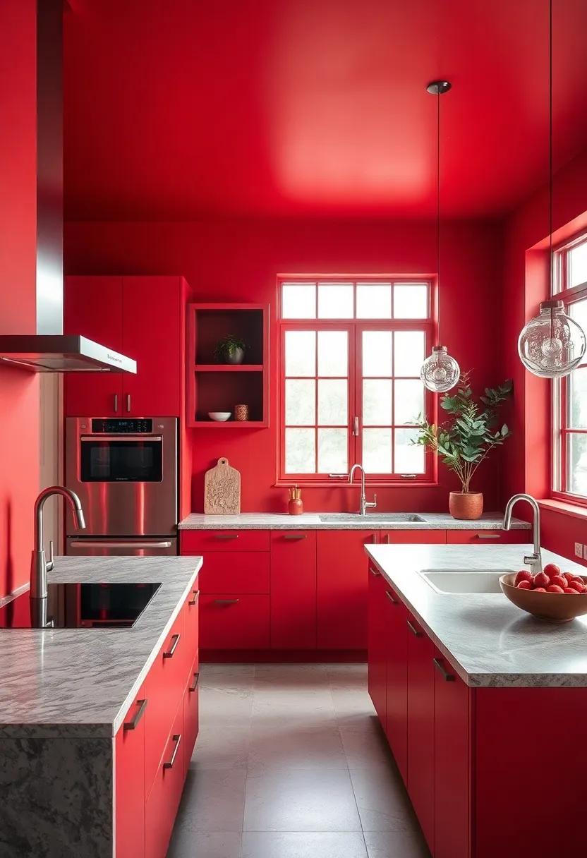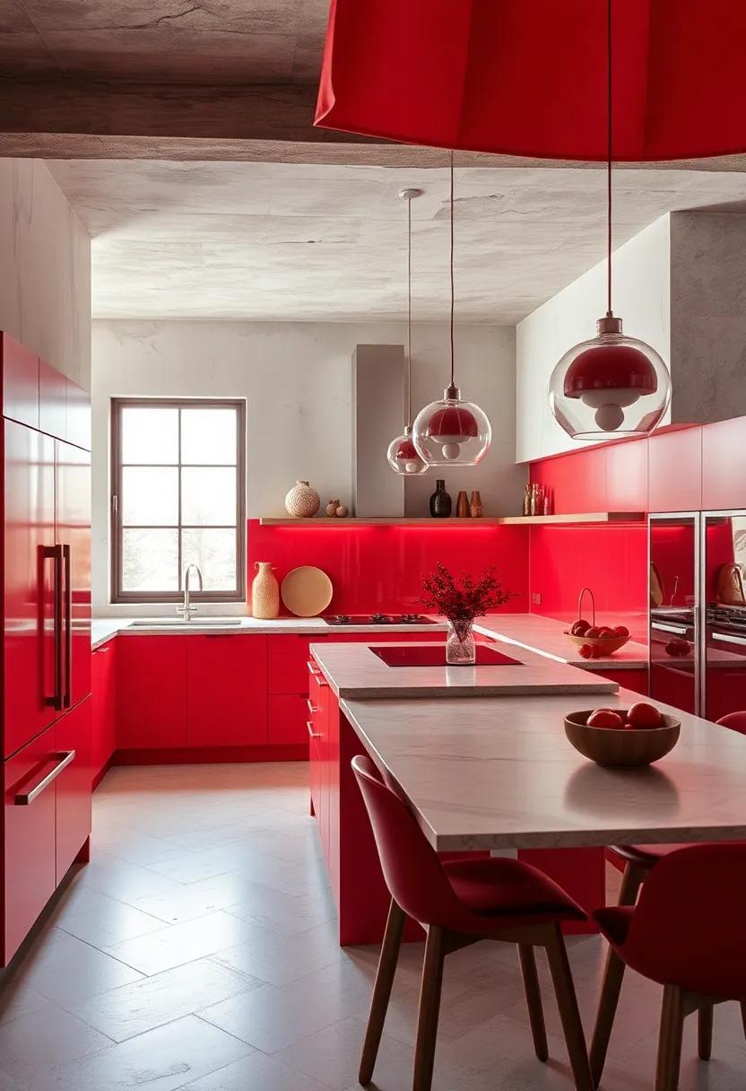 - painted Accents: Paint a small island or a feature wall in red for a dramatic effect.