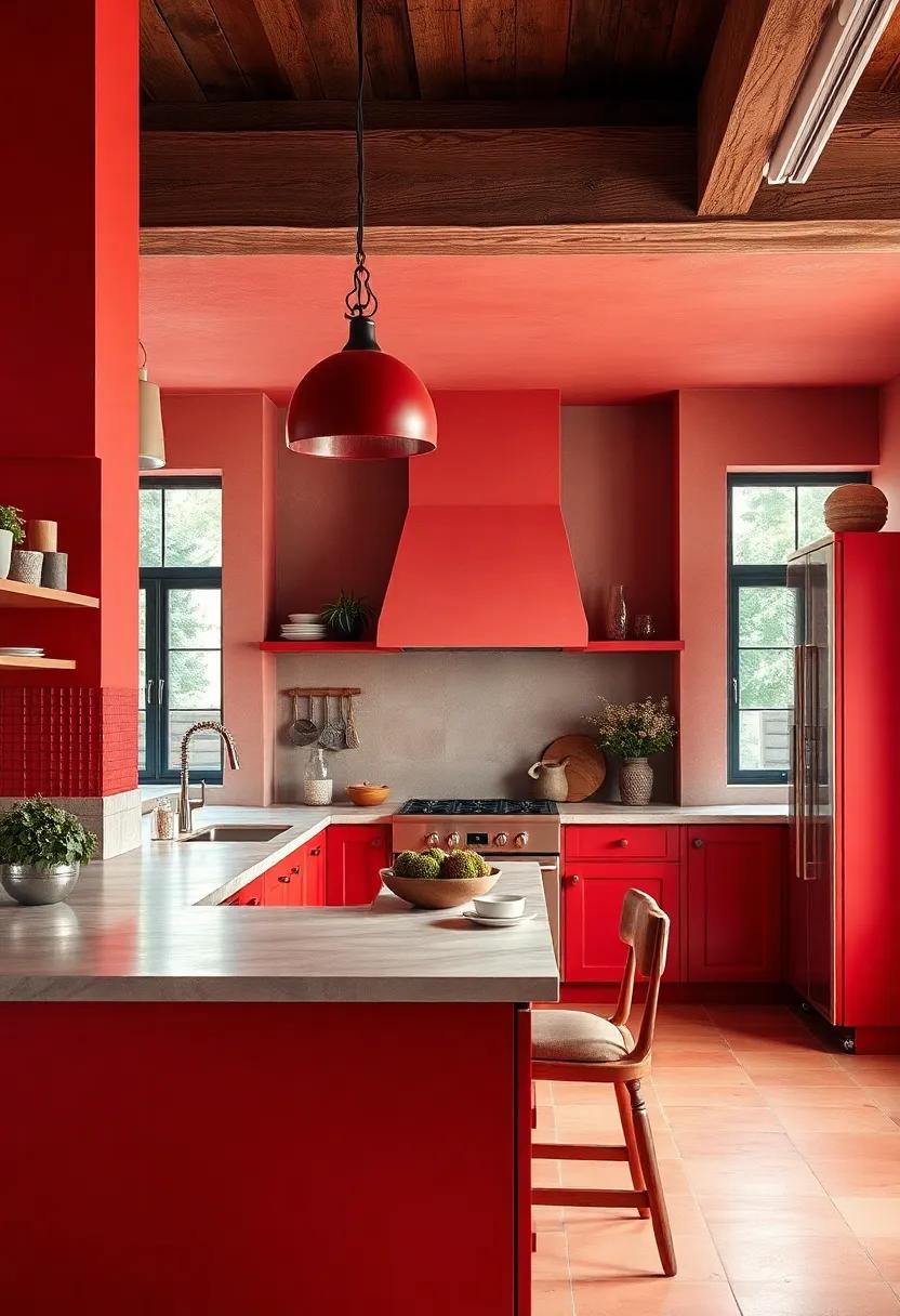 When it comes to achieving a rustic elegance in the kitchen, few combinations can match the captivating allure of red and wood. This duo is perfect for infusing warmth and character into your cooking space. Imagine striking red kitchen cabinets paired with rich wooden countertops; the contrast not only draws the eye but also creates a welcoming atmosphere. To enhance this aesthetic, consider incorporating elements like: