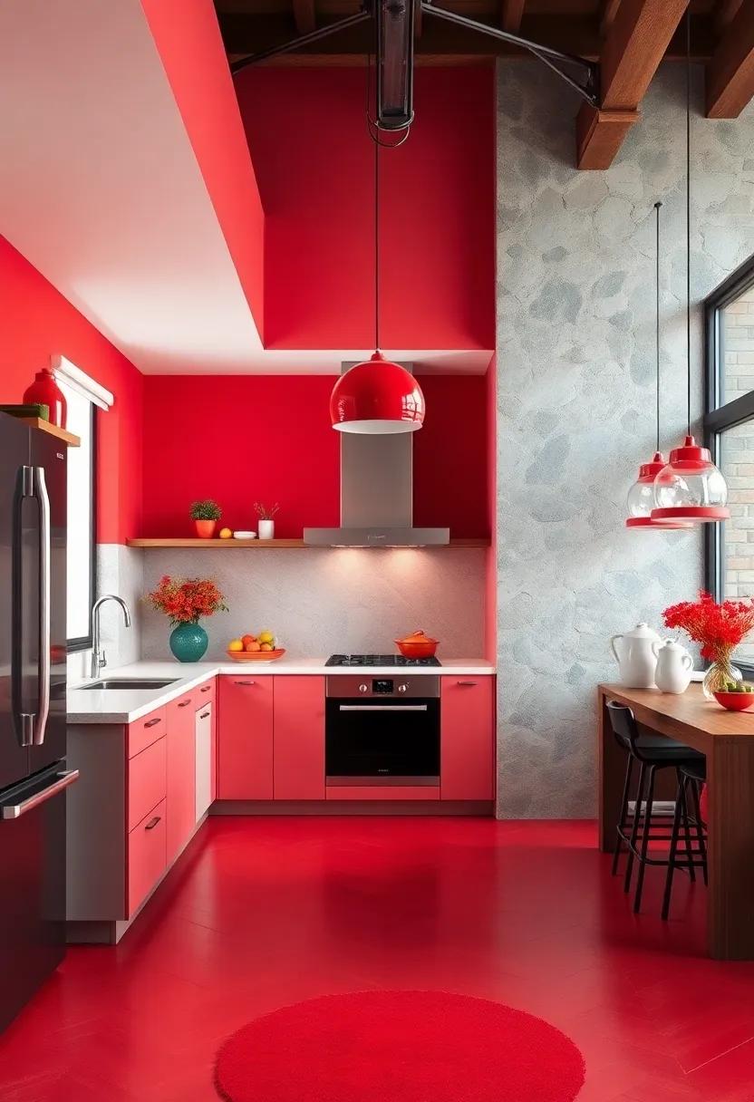 Transform your kitchen with a striking statement wall that bursts with energy and passion through the use of bold red paint. This vibrant color not only commands attention but also invigorates your cooking space, making it a central hub for creativity and gathering. A red accent wall can serve as the perfect backdrop for contemporary artwork or sleek kitchen utensils, tying together the decor while keeping the ambiance alive. Consider the following elements to enhance the visual appeal: