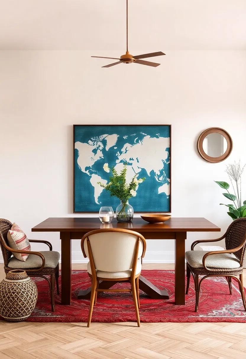- Textiles: Use vibrant fabrics from different cultures, perhaps from trips abroad, blending them into your seating or table settings.