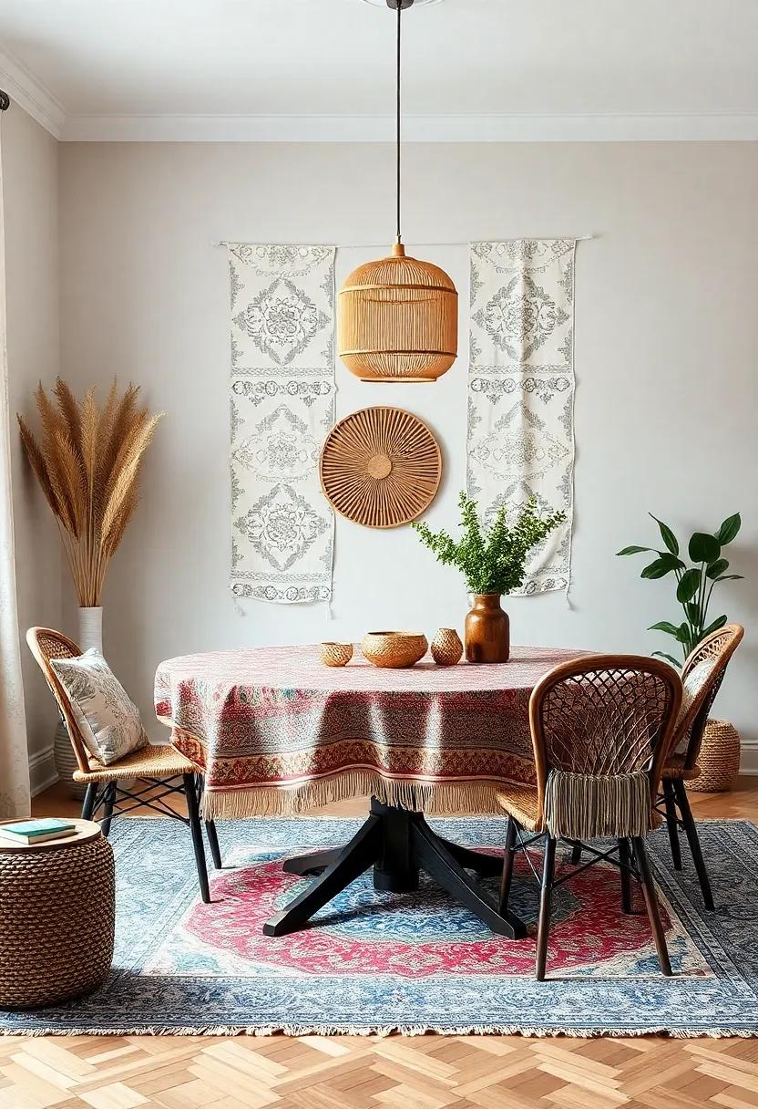 As you curate your dining room’s textiles,don’t shy away from layering different patterns to create an authentic Bohemian atmosphere. Play with scale; large motifs can be paired with smaller ones for contrast, while subtle nuances can evoke a sense of harmony. A lovely dining room table setting can include everything from mismatched plates to colorful napkins that echo the textiles draping around the room. Consider utilizing a simple table layout: