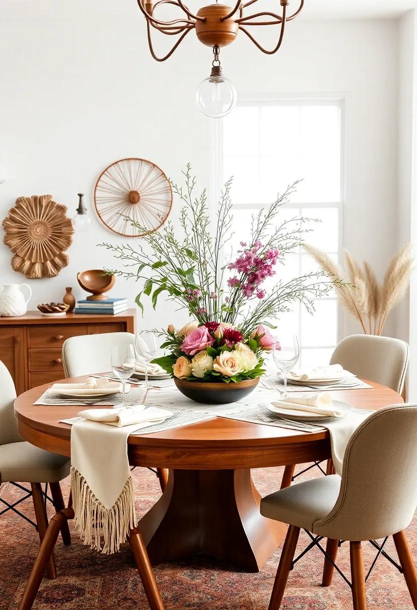Don’t shy away from incorporating personal touches. Adorn your centerpiece with handmade items like woven baskets or unique sculptures that reflect your personality and travels. Combine larger focal points, like a splendid floral arrangement, with smaller elements such as textured linens and decorative stones to create an inviting atmosphere. Remember that symmetry isn’t a necessity in bohemian decor; rather, aim for a curated chaos that feels artistic and lived-in. This harmonious juxtaposition will not only enhance your dining experience but also spark delightful conversations around your table.