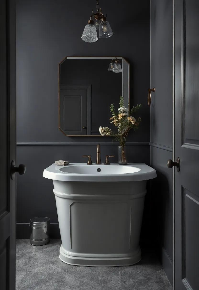 Antique-inspired vanities are more than mere functional fixtures in a vintage bathroom; they are the heart and soul of elegance. When selecting these exquisite pieces, consider key elements that harmonize with dark color palettes while accentuating sophistication. Rich woods, ornate carvings, and intricate detailing provide a fantastic contrast to deeper hues, such as navy or emerald, creating a profound visual impact.Incorporate fittings like brass or matte black fixtures that reflect the timeless charm of bygone eras, adding a luxurious touch that elevates the overall aesthetic.