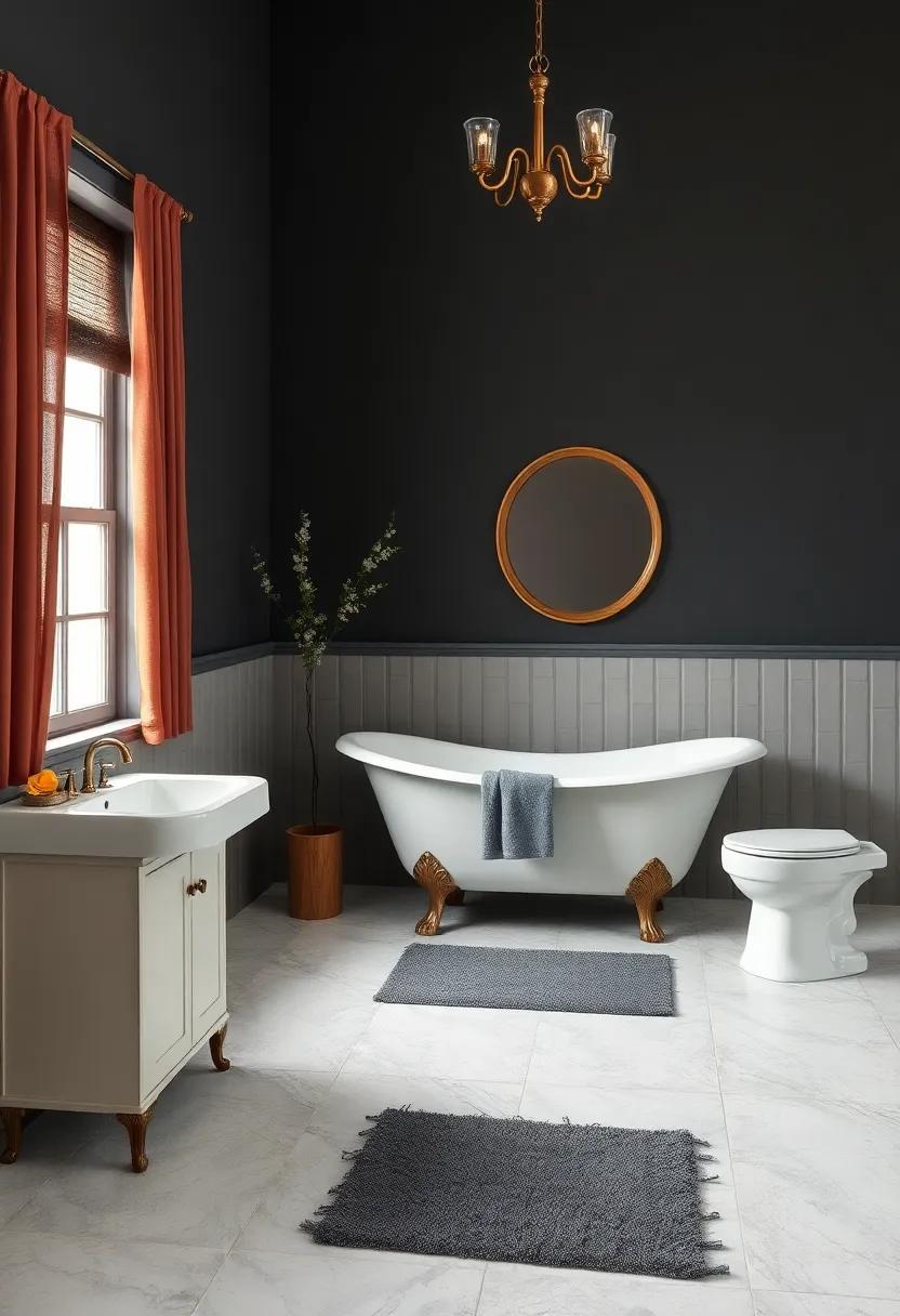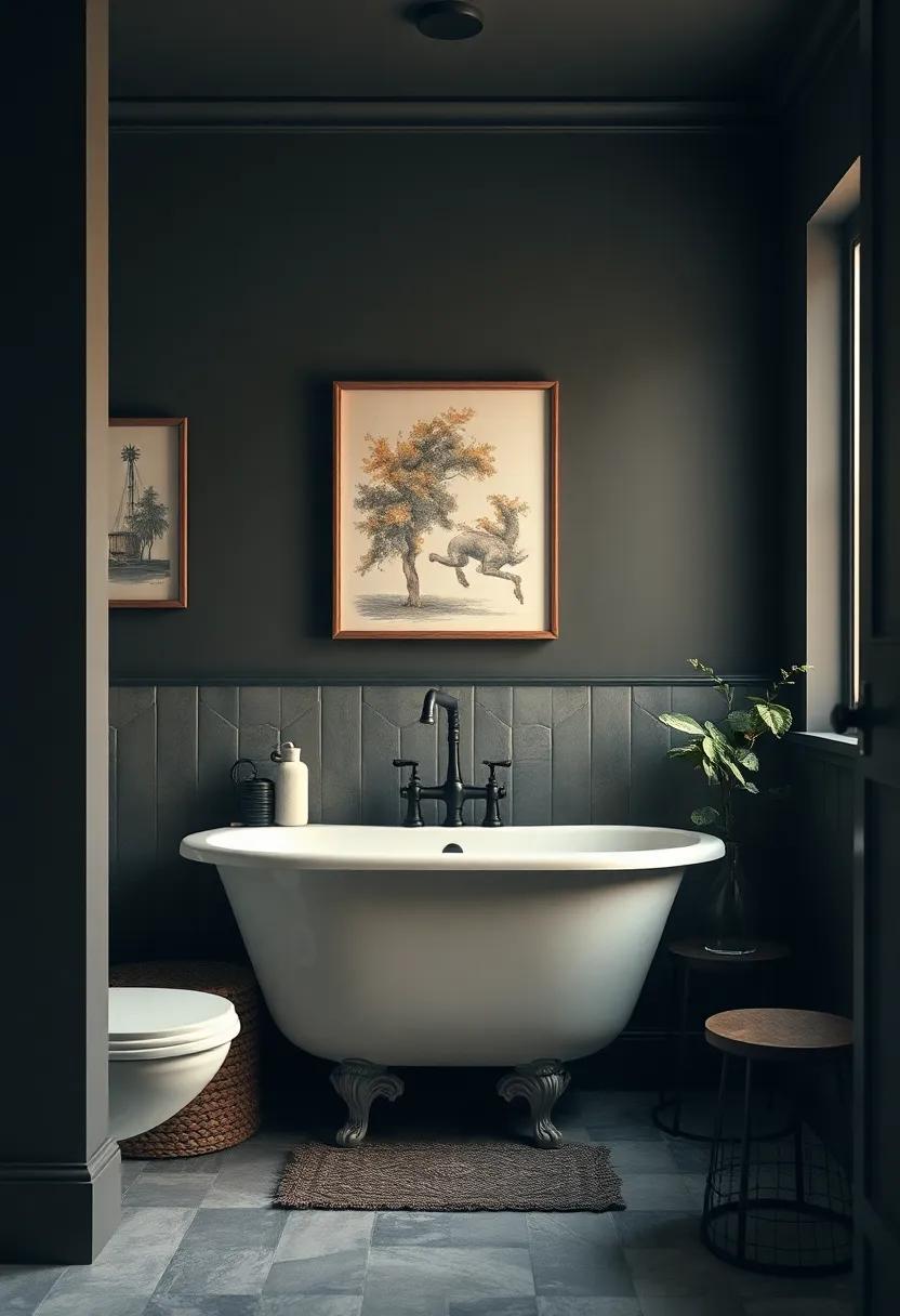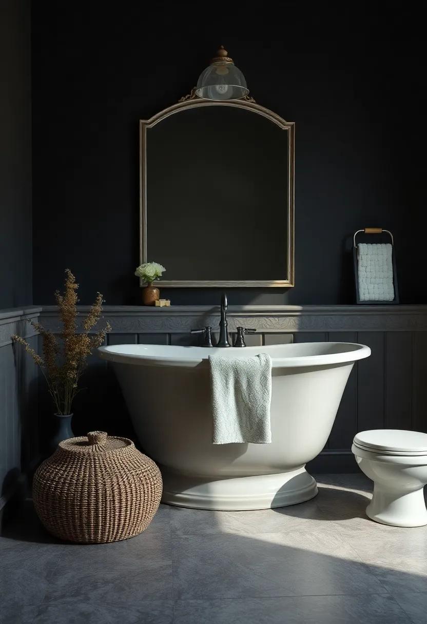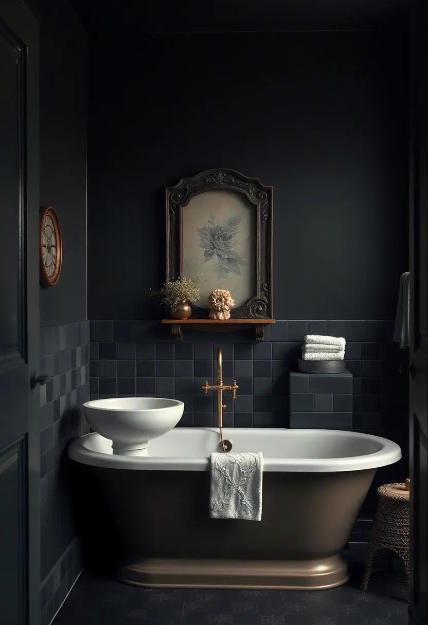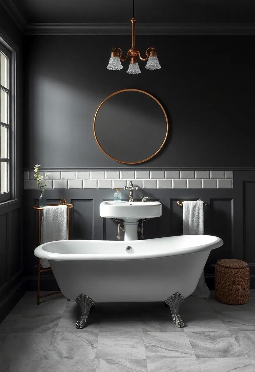 In a vintage bathroom infused with dark hues, the bathtub can serve as a stunning focal point that exudes both charm and creativity. Consider these exquisite options that blend functionality with artistic design:
