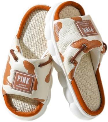 Cute Cow Linen Slippers for Couples – Non-Slip Summer Indoor Footwear