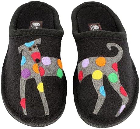 These unique slippers feature a charming design that brings a playful touch to your wardrobe. With a wool cutout of a colorful pup, they are sure to be a favorite. Made with boiled wool, the upper and lining provide a super soft texture that feels amazing against your skin. The natural properties of wool help to keep your feet at an ideal temperature, managing moisture and sealing in warmth during chilly days. The latex molded midsole offers essential arch support, while the double-felted outsole ensures comfort and durability over time.