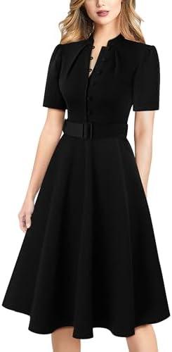 VFSHOW Womens 2024 Business Work‌ Office Pockets Belted​ Buttons ⁣Elegant Fit and Flare A-Line‌ Dress