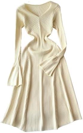 This stunning knitted dress combines elegance and comfort, making it an ideal choice for both⁢ office and party‍ settings. Crafted‍ from⁣ high-quality ⁣polyester, the fabric boasts‌ a mid-calf length that flatters the figure ‍while providing‌ a slim fit. The V-neckline and flare sleeves enhance its sophisticated​ appeal, offering a stylish yet professional appearance. The solid ⁣color pattern ‌ensures versatility, allowing you ⁤to pair‍ it effortlessly with accessories⁤ or outerwear for various occasions.