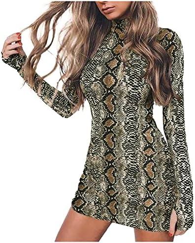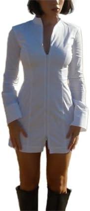 OCUH Mini Dress Long Sleeve Stand Collar Zip Up Slim Fit Bodycon Dress Solid ⁢Color Club ⁤Dress​ Casual ‌Work Pencil Dress