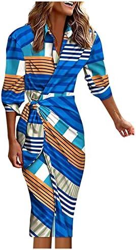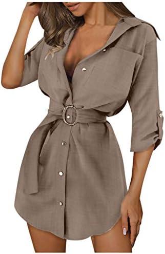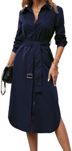 Womens Midi Dress Solid​ Button Front Belted ‍Shirt Dress ⁢High Waist Work⁢ Dress