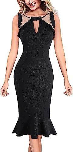VFSHOW Womens⁤ Keyhole Ruffle Trim ⁤Sleeveless‌ Bow Cocktail‌ Mermaid Bodycon Dress 2023 Sexy Wedding Guest Night Out Dress