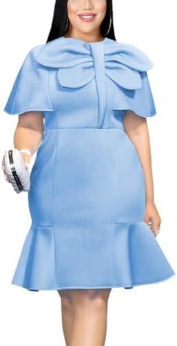 ONTINVA ⁢Women’s Ruffled ‍Party⁢ Dress Vintage Short Sleeve Mermaid Bodycon Midi Casual Work Cocktail⁣ Dresses