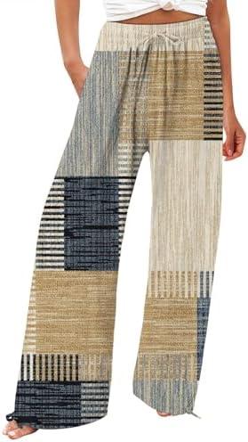 Womens Linen Pants Wide Leg Palazzo Lounge Pants for Women Casual Loose Sweatpants with Pockets