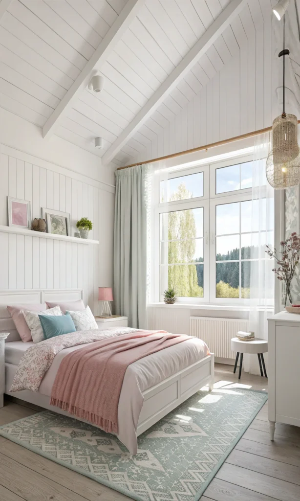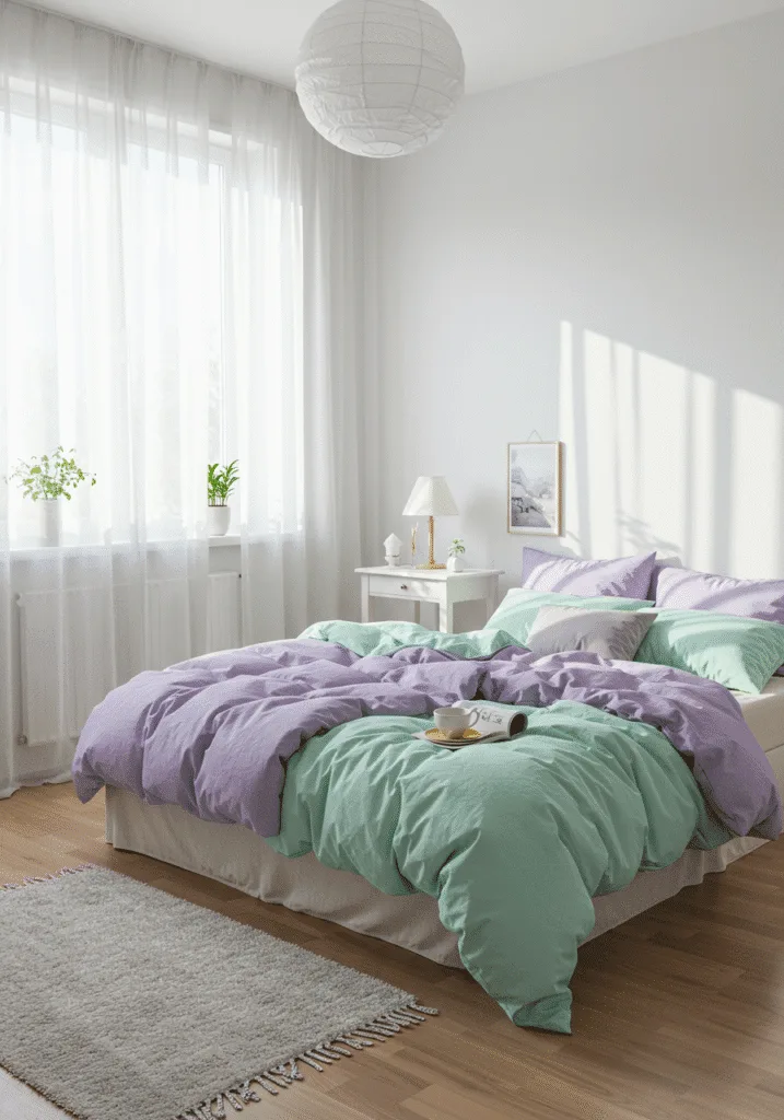 Pro Tip: Matching your duvet or curtains with wall colors creates a continuous, airy ambiance.