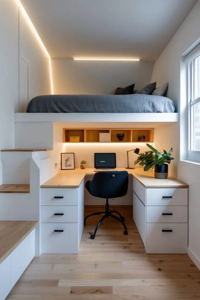 When every square foot counts, choosing furniture that serves multiple roles becomes essential. Pieces that combine sleeping, working, and storage functions save space and reduce clutter.