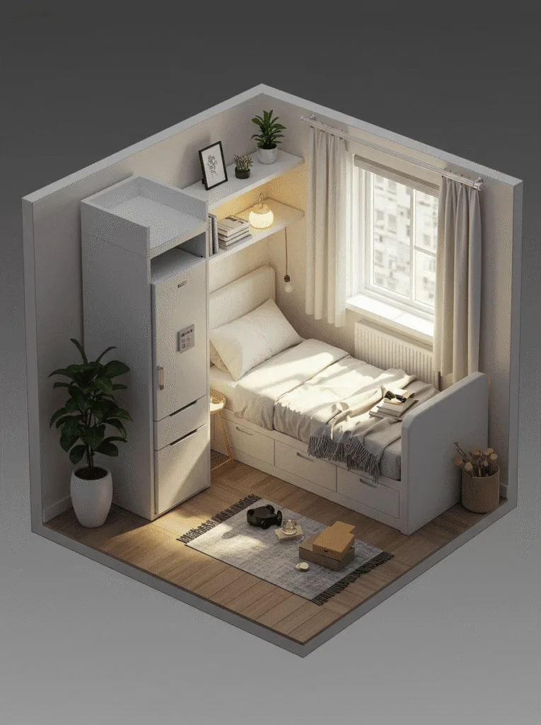 From experience: Utilizing bunk beds and beds with compartments has revolutionized how I optimize corners in tiny bedrooms.