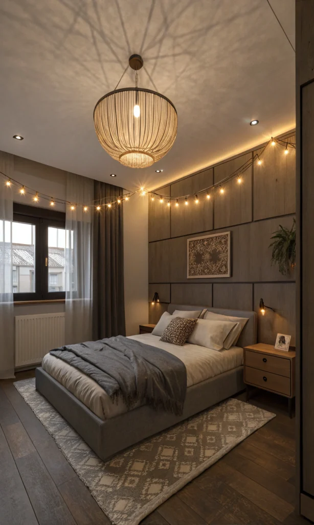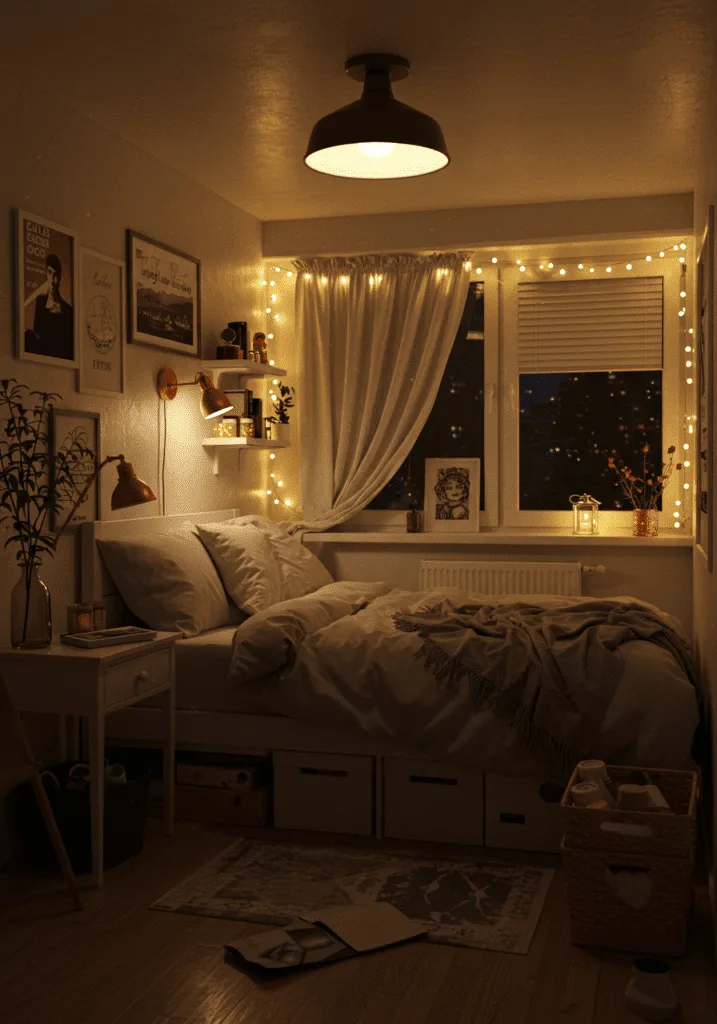 Proper lighting can dramatically enhance the ambience and spatial feel of a compact bedroom.
