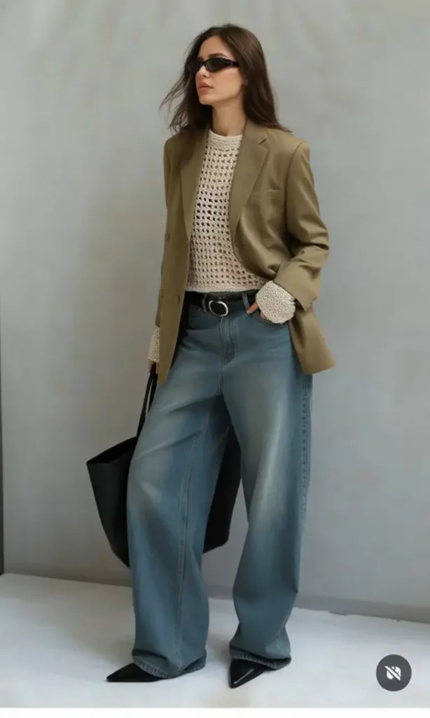 Proportion is key in creating harmony between structured blazers and fluid denim. A quote that resonates is from Gregory Patterson: “All great looks embody balance.” This outfit embodies that perfectly—delicate yet assertive.