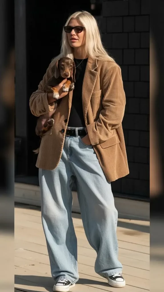 There’s a nostalgic charm in a honey-toned corduroy blazer teamed with light denim and crisp sneakers—perfect for laid-back autumn weekends. Corduroy’s unique texture elevates simple outfits, adding a tactile richness that feels both cozy and polished.