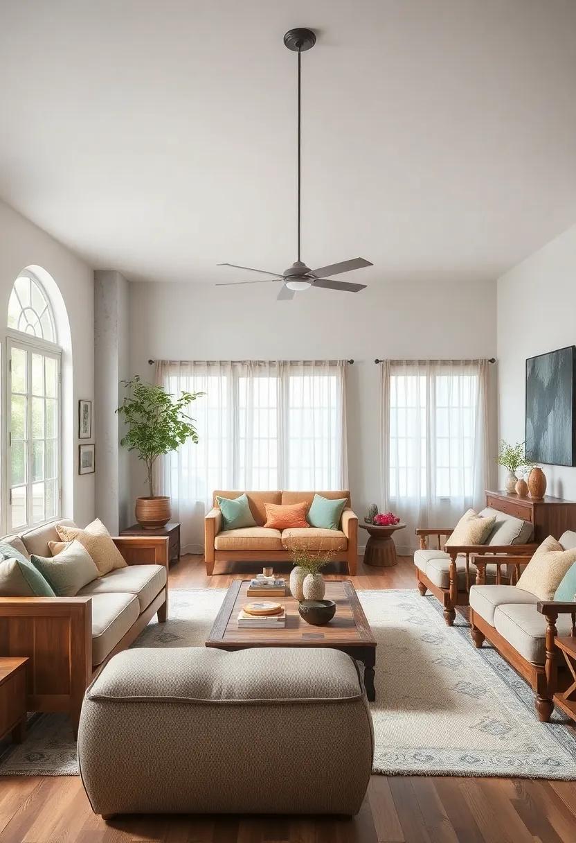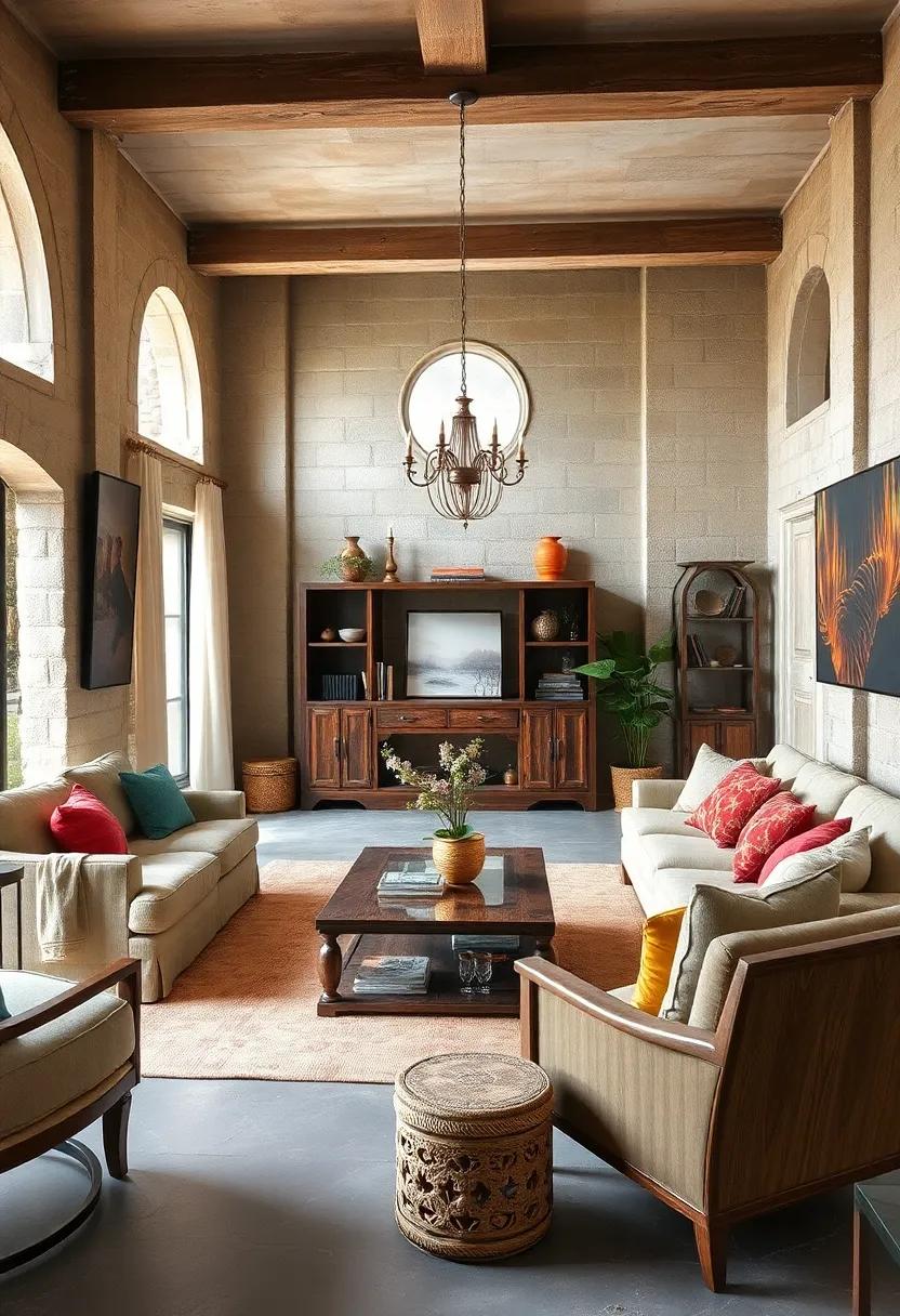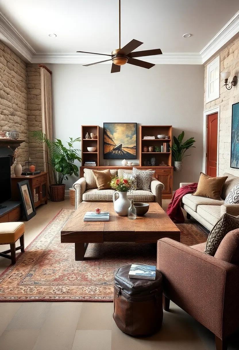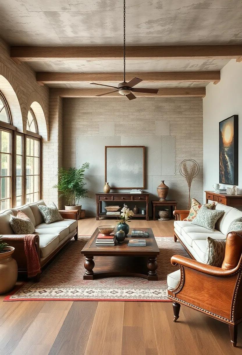 Layering different textures can elevate your vintage living room, creating a dynamic yet harmonious look. Incorporate linen drapes that billow softly, allowing natural light to filter through and enhance the rustic charm of wood accents. To tie everything together, consider a small table adorned with an assortment of vintage books and decorative items made from natural fibers. Utilize colors that echo the muted tones of vintage decor, crafting a cohesive aesthetic that invites relaxation and conversation.Here’s an overview of textiles for thoughtful layering: