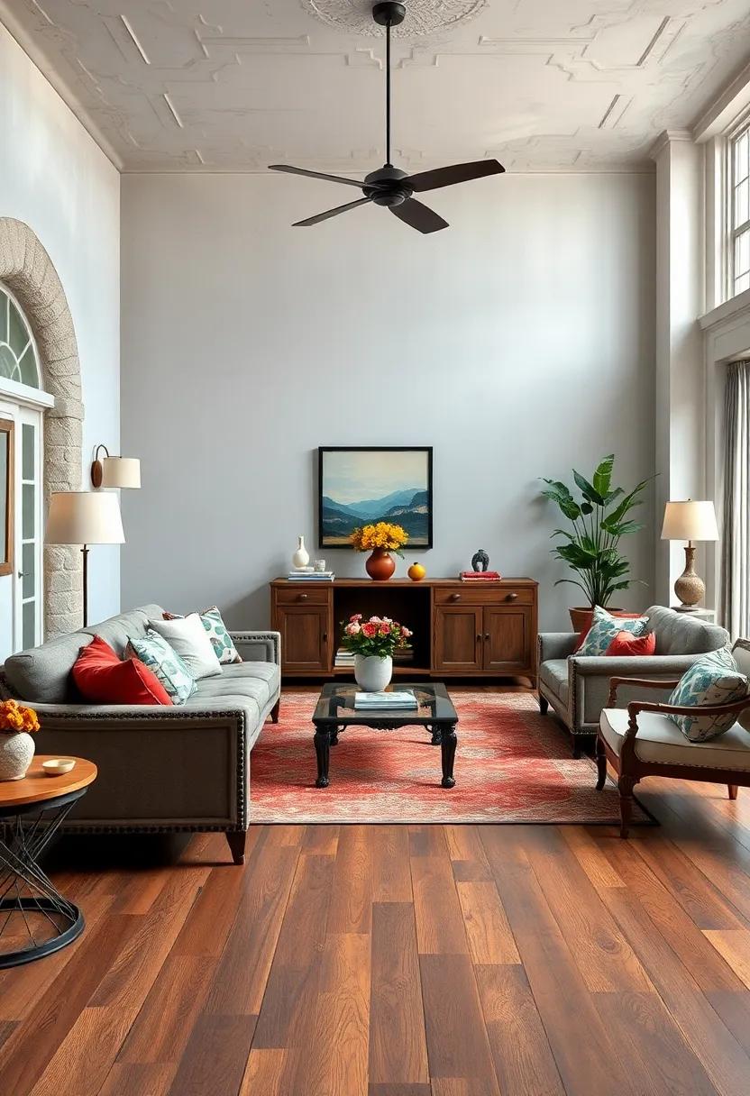 Choosing the right flooring can greatly enhance the visual appeal of a vintage living room. Selective wood floors not only provide durability but also seamlessly blend with the charm of distressed wood furniture. Opt for distressed oak or wide-plank pine for their authentic, aged textures that evoke a sense of history. Each board tells a story, offering unique knots and grains that add character. Consider the following options: