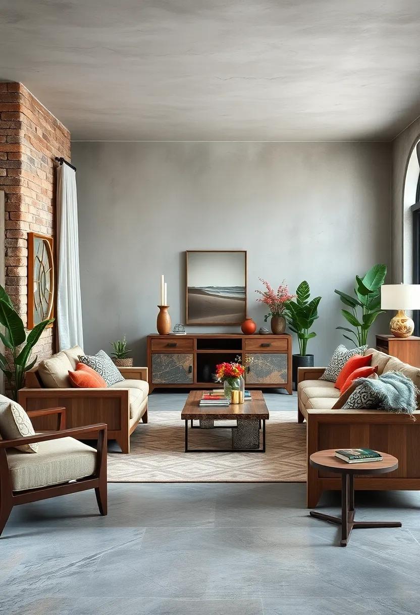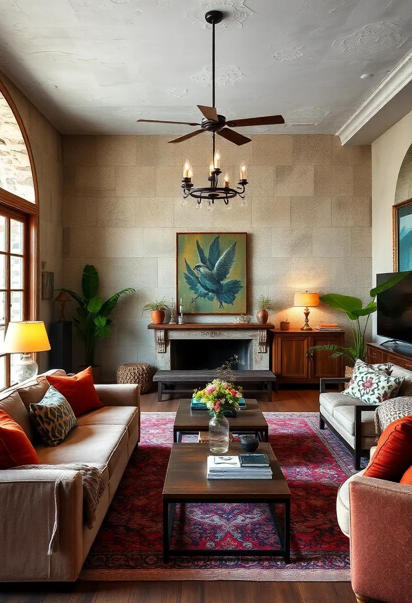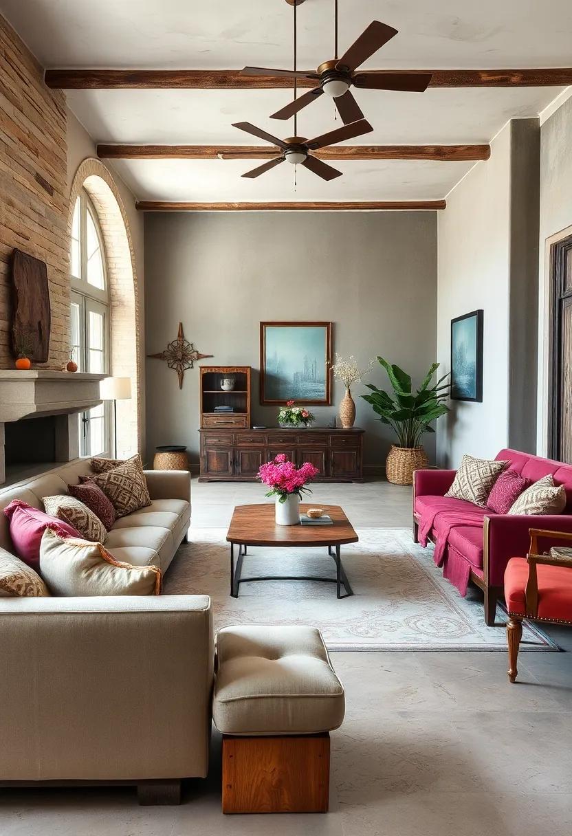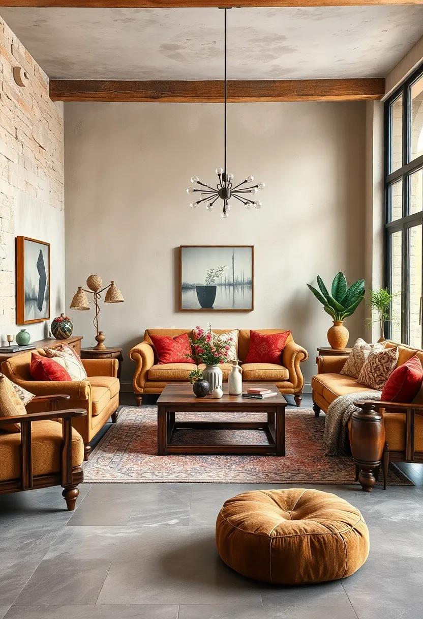 - Layering Textures: Mix different fabrics like a distressed leather sofa with velvet cushions for depth.