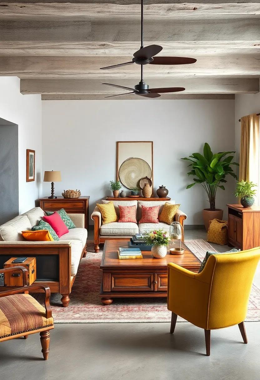 Incorporating vintage wood accents into your living space can serve as an anchor for more vibrant elements, creating an inviting and dynamic atmosphere. The rich textures and patinas of distressed wood bring an organic warmth, making it an excellent foundation for playful pops of color. Consider pairing a weathered oak coffee table with bright cerulean armchairs, or mixing deep mahogany shelves with vivid art pieces that draw the eye. Such thoughtful combinations can transform a traditional aesthetic into a lively tapestry of modernity and nostalgia.