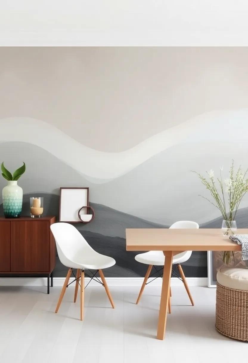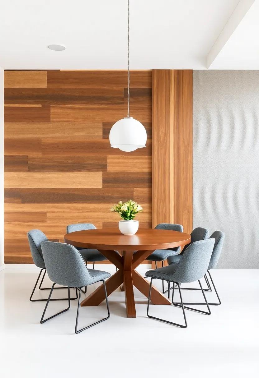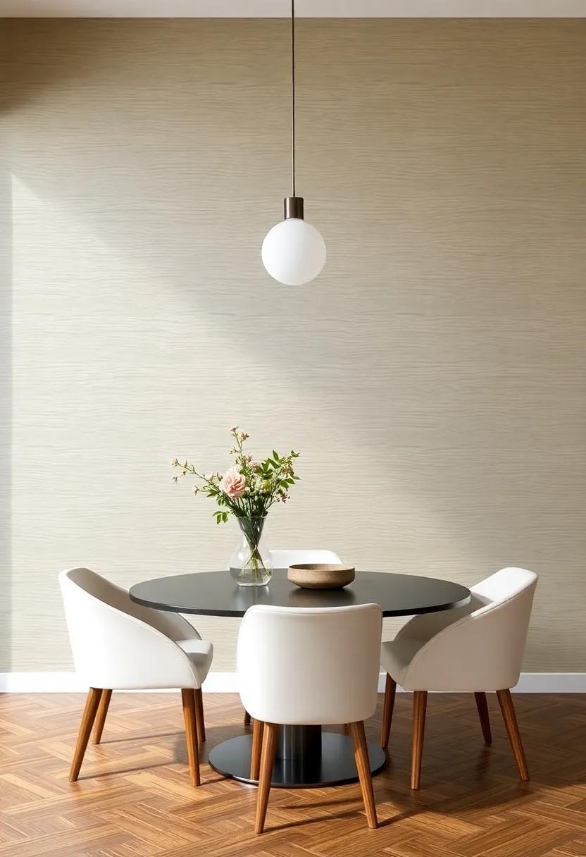 By strategically placing furniture and art pieces against this backdrop, you’ll create a cohesive and stylish dining area that resonates with modern design sensibilities. Consider incorporating an array of textures—such as metallic finishes or rustic elements—to further enhance the space’s contemporary charm.