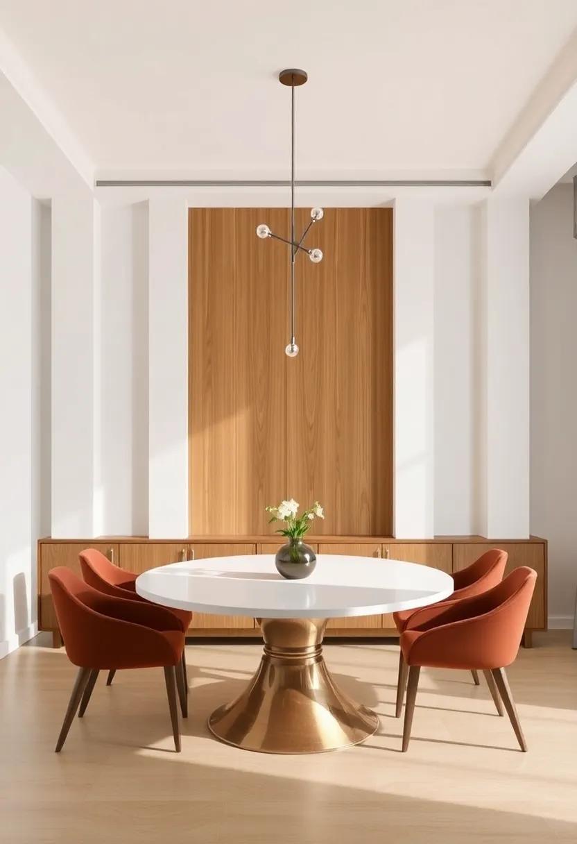 Embracing the Mid-Century Modern aesthetic for your dining room can breathe new life into your space, creating an atmosphere that feels both nostalgic and fresh. One striking way to do this is by choosing an accent wall that showcases iconic patterns and colors typical of the era.Consider using geometric wallpaper or a rich, deep color like olive green or mustard yellow. These bold hue choices can serve as a backdrop for your dining area, beautifully complementing natural wood furniture and simple, sleek lines characteristic of this design movement.