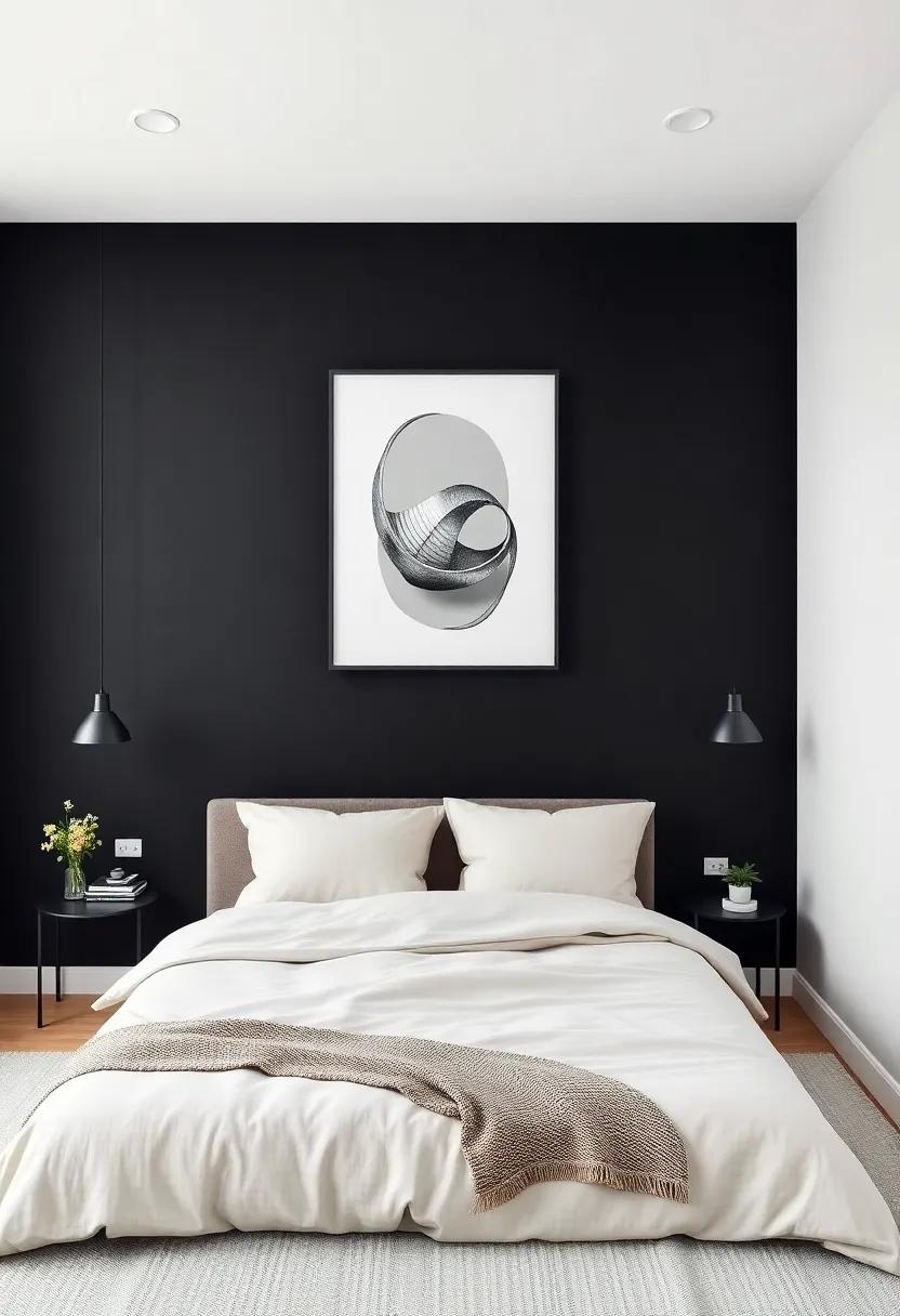 Dramatic Contrast: Dark Accent Walls in Light-Filled Bedrooms